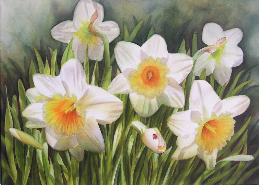 daffodils paintings watercolor painting flower ladybug flowers oil colour harmony rose joa doris daffodil watercolour canvas german artists artist dorisjoa