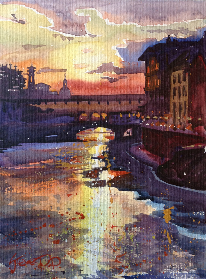 vecchio ponte florence watercolor painting italy paintings florencia acuarela aquarel florenz acquerello pittura famous abstract arte firenze artists acuarelas signed