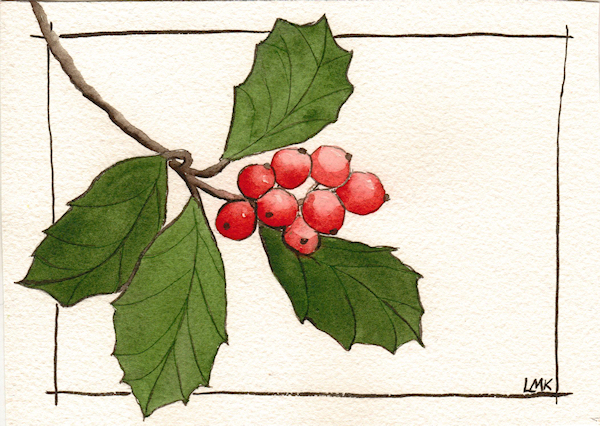 holly watercolor leaves ink pen christmas drawing sbwatercolors paintings plus berries sketching painting cards tree susan watercolours
