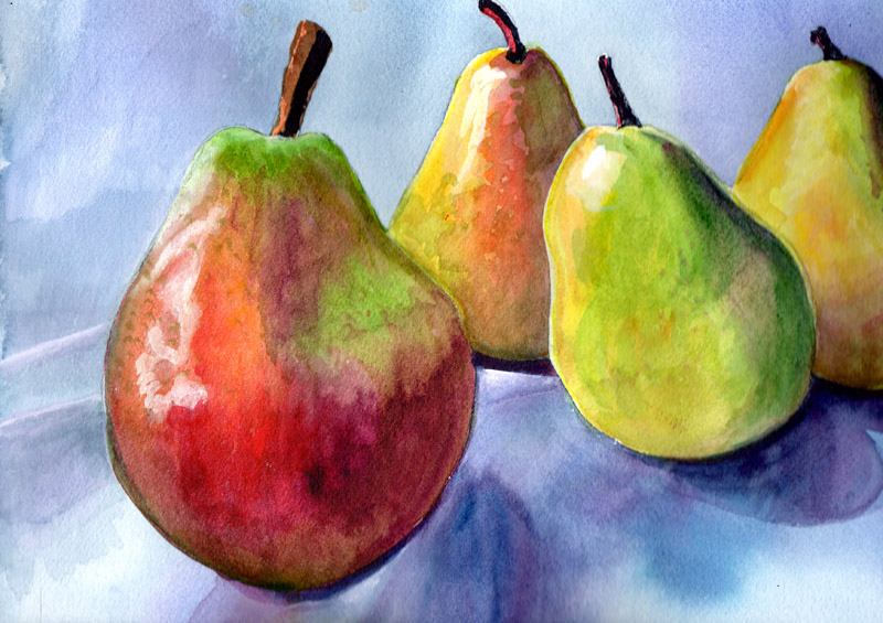 watercolor pears still painting paintings watercolour fruit water three artists thomas drawing needham pear fresh watercolours glass choppy yellow watercolors