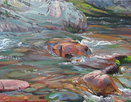 landscape stream oil water colorado painting paintings rock rushing artist fowler contemporary rocks artists susan pastel mountain landscapes caribbean bonner