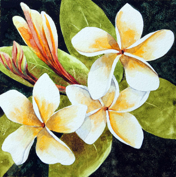 watercolor plumeria tropical flowers paintings kauai hawaiian frangipani fine flower hawaii marionette painting artist watercolors contact