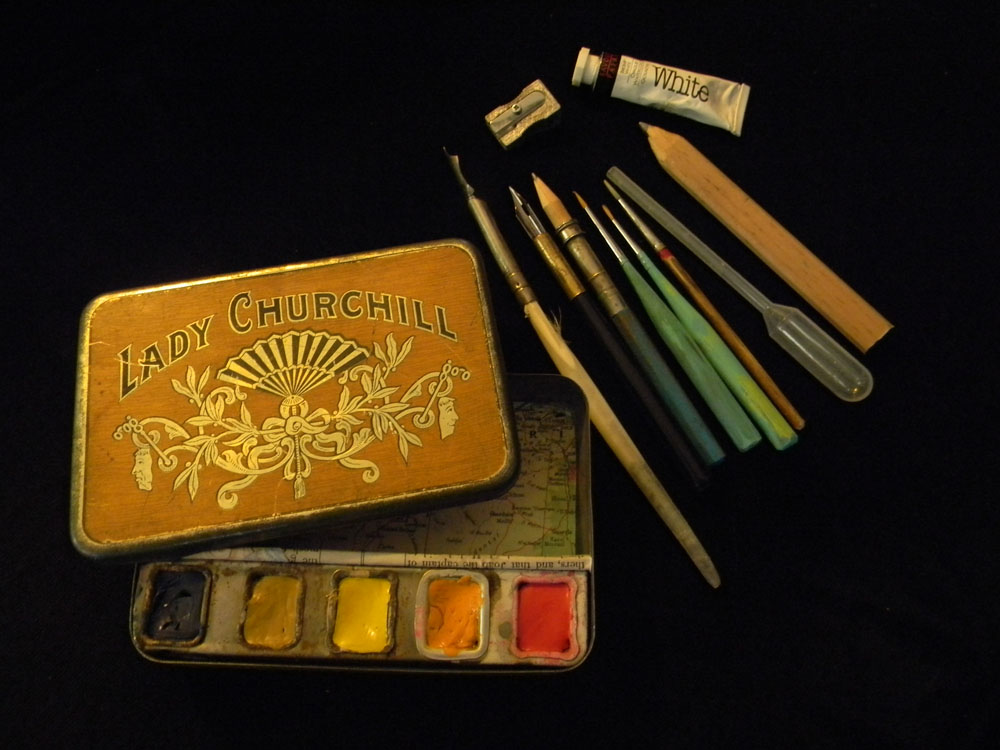 watercolor tin box paint watercolour sets colors antique artist ken scott painting tins watercolors cigarette egyptain frontier american pens dip