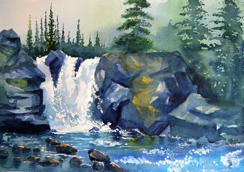 waterfall artist watercolor paintings fine signed painting landscape water drawing fall artists dj rogers watercolour aceo abstract aquarelle easy portraits