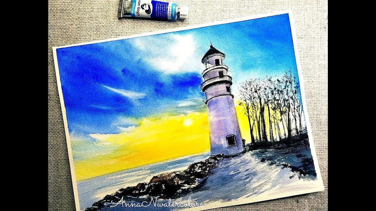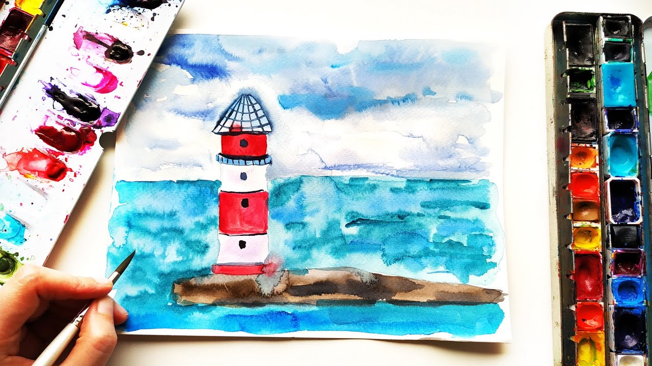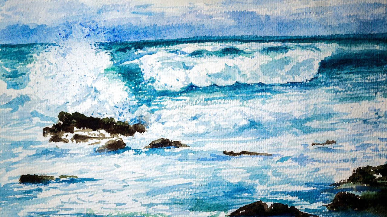 watercolor seascape painting easy quick tutorials lessons acrylic